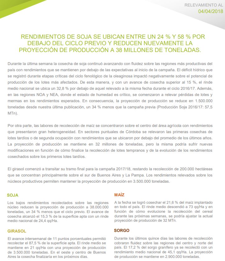 Entraron las cosechadoras a los lotes: séptimo recorte en la estimación de producción de soja de @estimacionesbc, la perdida de la #Sequía18 totaliza frente a primera estimación 16 millones de toneladas (caída de 30%). Hoy el techo de la #Cosecha18 es 38 millones de toneladas.