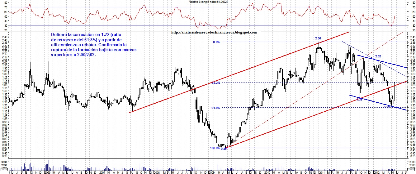 Tornado882 escribió: Me parece a mi o ese grafico tuyo es semanal? hay un nivel que fue soporte hace poco luego del split en 1,69 / 68 = 22 de antes, ahi estuvo bastante tiempo boyando entre 1,68 y 1,80 mas o menos segun recuerdo.