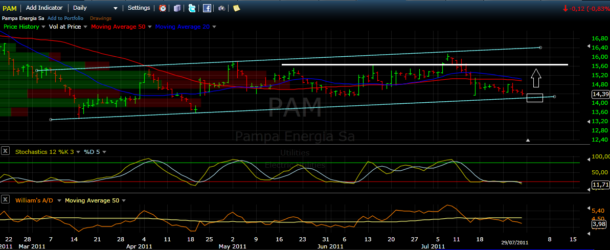 Se ha observado que en todos los meses del ultimo año, siempre hubo una suba de mas de 5%y la unica excepción fue el Julio pasado. Por STO y por haber llegado a la base del canal en ADR, deberia darse ese rebote antes del vencimiento de AG.