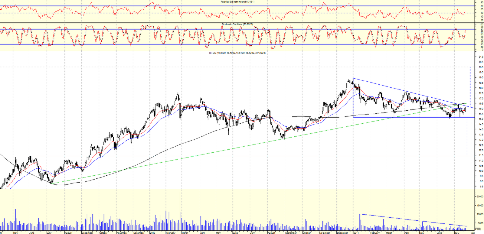 Si nos regimos por el chartismo, terrible triangulo descendente con resolucion bajista de envergadura hacia la zona de los 11.50.............