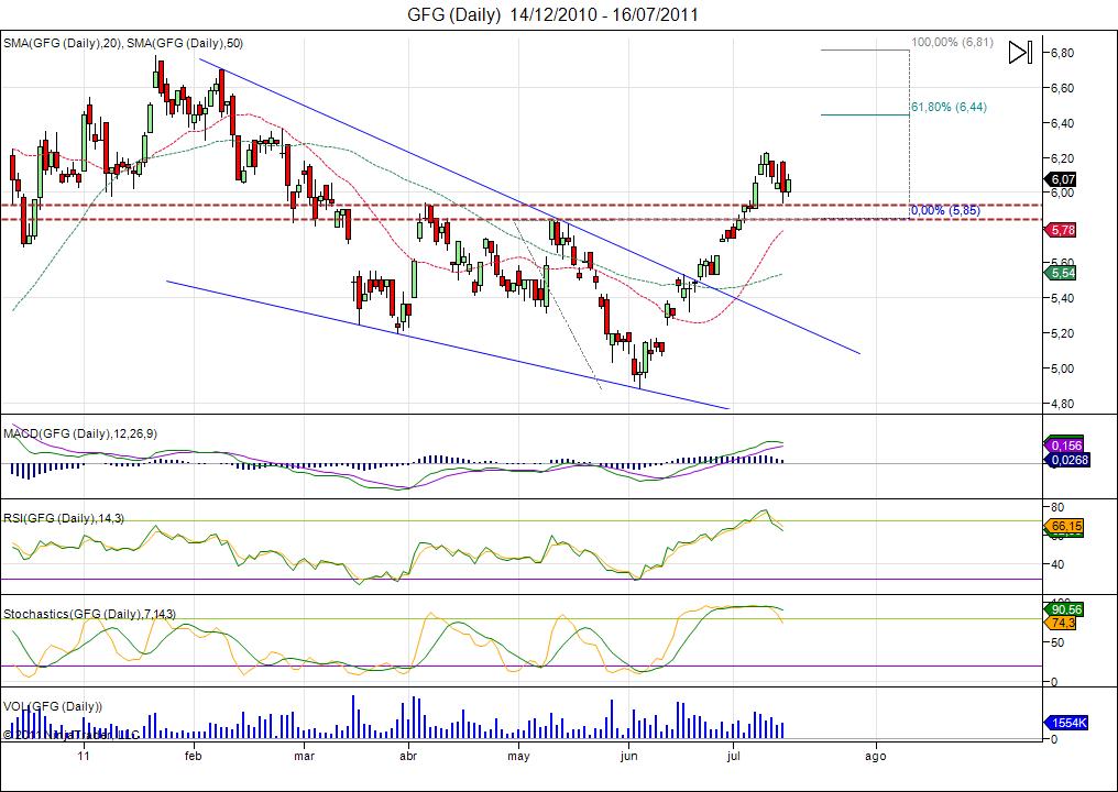 Primero iria a buscar los 5.85 donde los toros saldrian a defender fuerte sus posiciones. Si se confirma el piso firme en esa zona, quedará intacta la proyeccion de la zona 6.45-6.50 antes del opex AG.