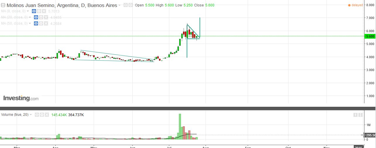 Se esta armando un lindo banderin de PB sano casi sin volumen. Si rompe al alza mañana o pasado mañana con volumen se nos vuela! Siguiendo un poco lo que hizo MORI hoy :100: