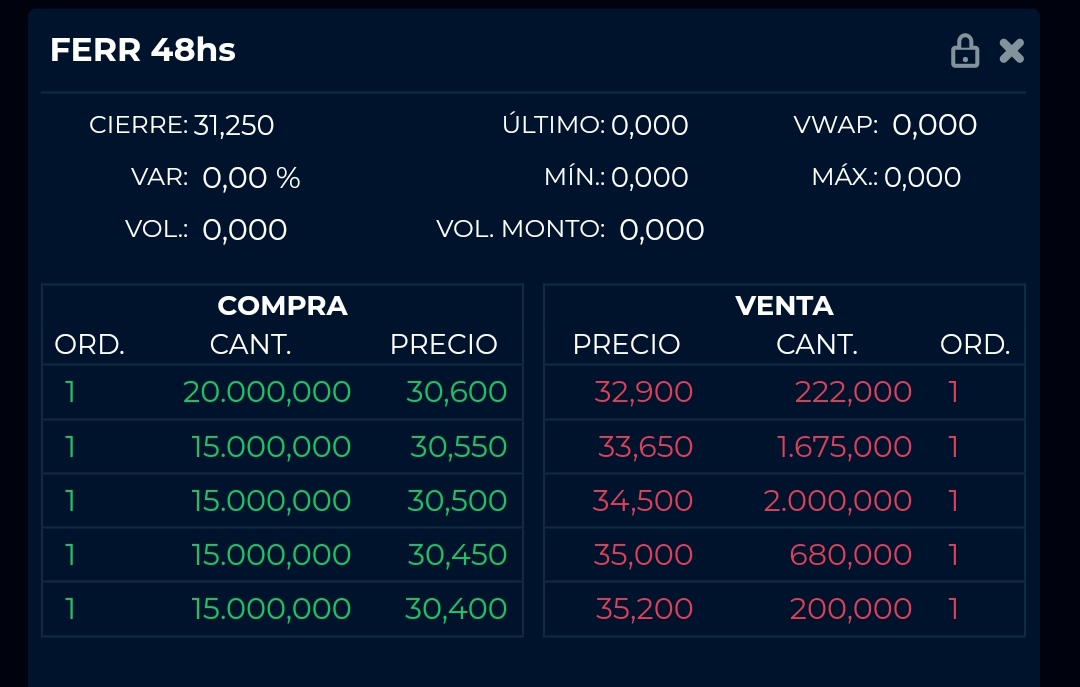 El VL es de 21,1 (VN $0,10). La Cotización es de 34,5. La capitalización es 32671,5 millones