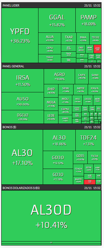 Sería un día mileista! Gracias a que se van los peronistas , está subiendo.