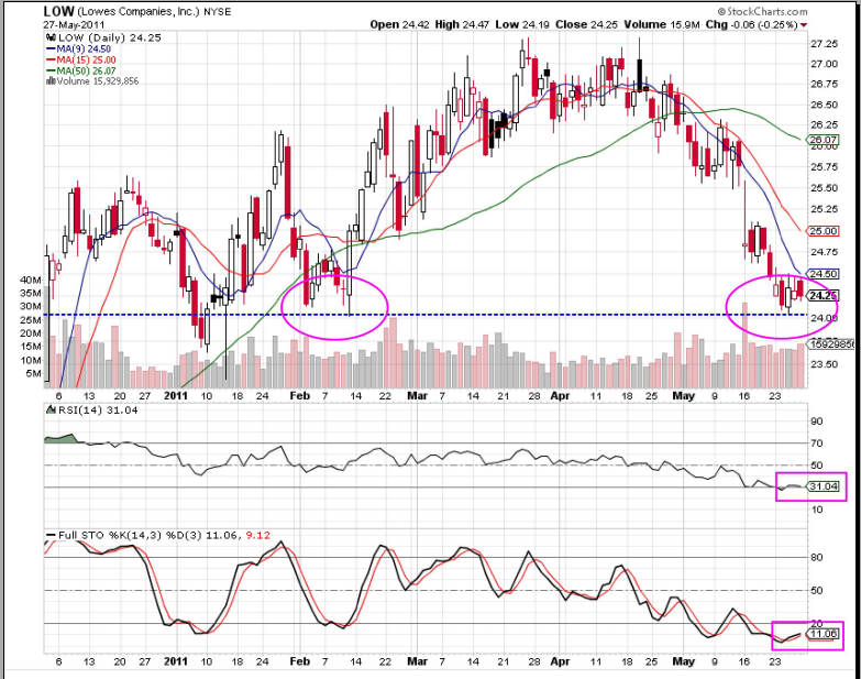 LOW: posible doble piso en 24. Osciladores en sobreventa, con incipiente cruce positivo en STO. Beta 1 (dado que pienso que esta semana los indices podrian la semana en positivo).