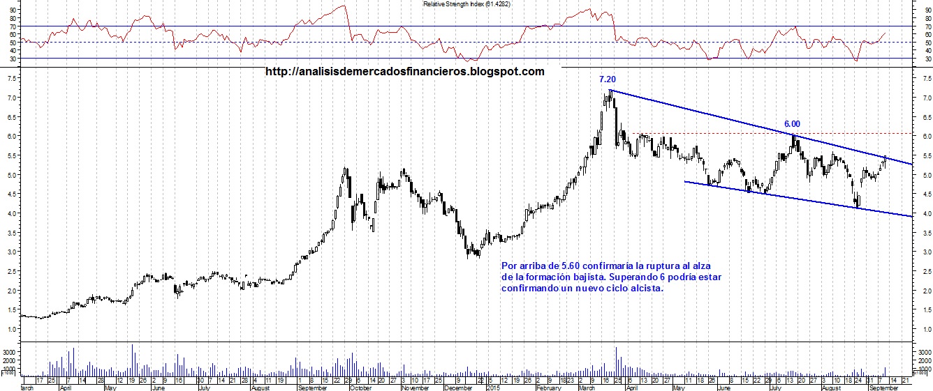 Estamos en una zona de definición me parece, mañana puede ser un muy buen día o habra alguna baja, ojala si hay baja sea para tomar impulso y seguir en busca de los 6, viendo a PAMP deberiamos ir a buscar los 6, para ya definir como piso piso los 5,40 en promedio