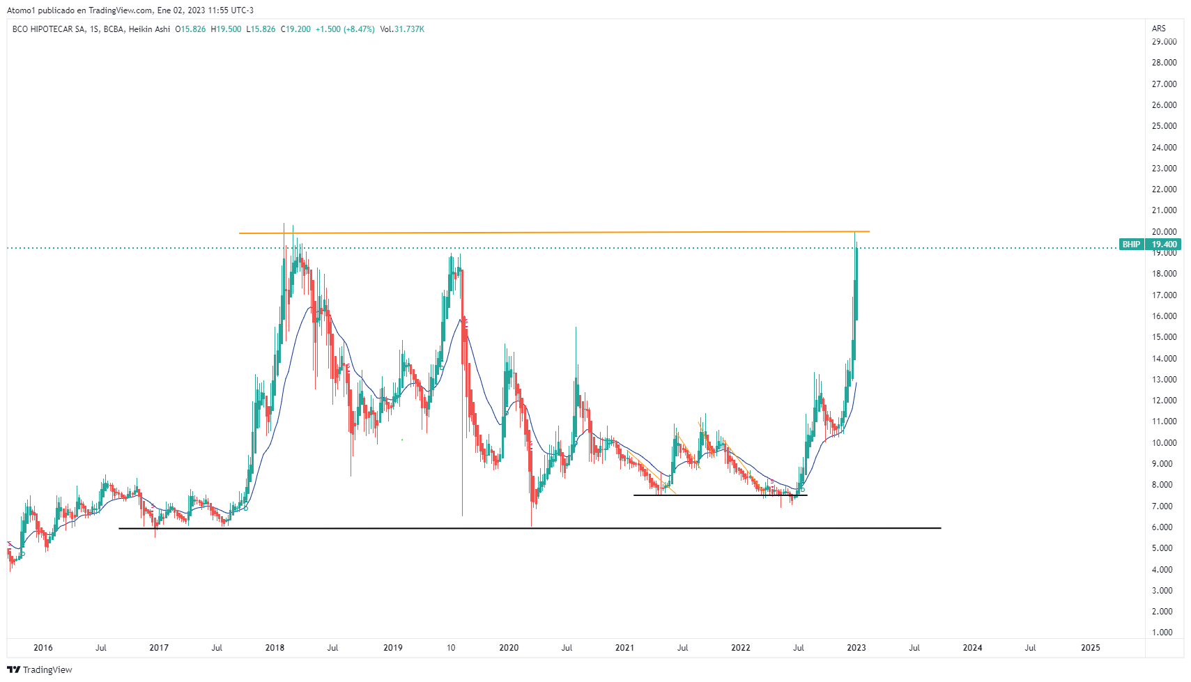 año 2018 pico de bhip con mauricio ---bhip 1 dolar que estaba $19 pesos....hoy dolar creo esta 190...y bhip en $27 pesitos.