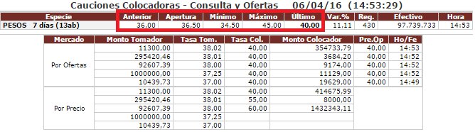Caución a 7 días en MAV (ex MerVaRos): Máximo en 45%.